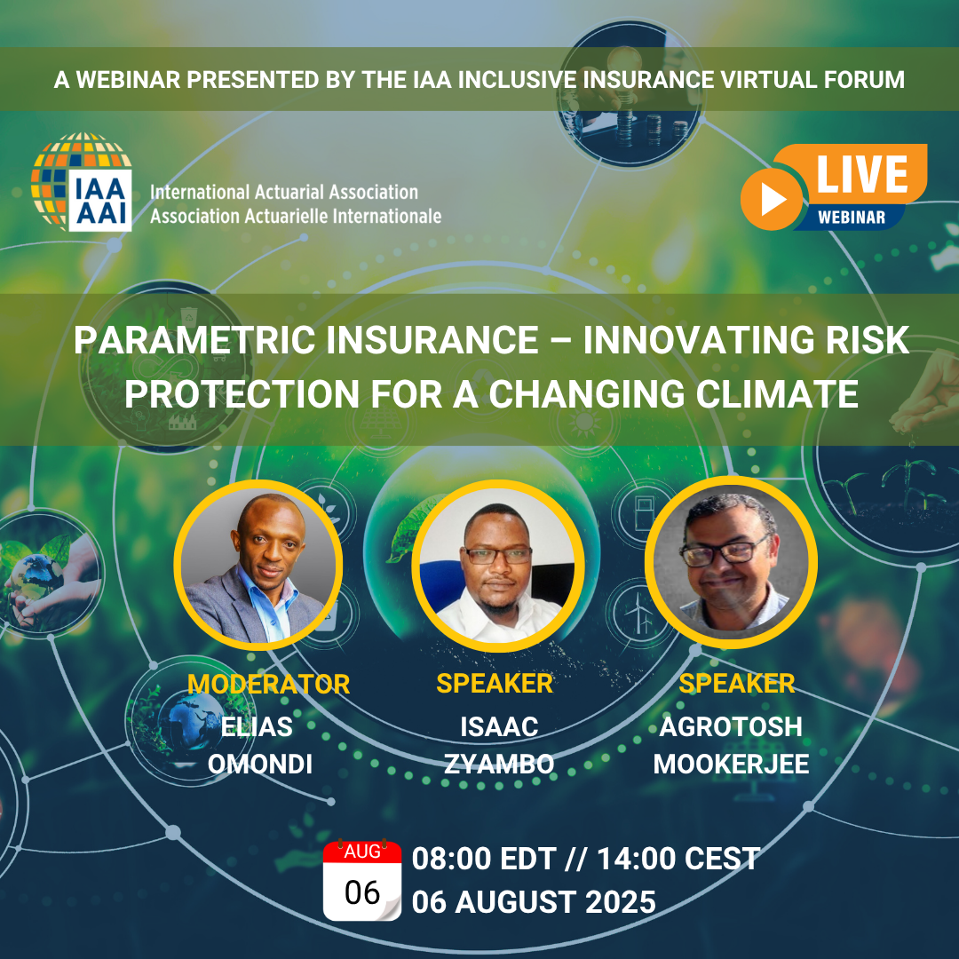 요약 | As climate risks intensify, the need for timely, scalable, and efficient risk-transfer solutions has never been greater. Parametric insurance is emerging as a vital innovation in the insurance space, offering pre-agreed payouts based on the occurrence of a triggering event, such as a natural disaster or extreme weather threshold, rather than on measured losses. Unlike traditional indemnity-based models, parametric insurance ensures rapid claim settlements and greater transparency, making it particularly suitable for underserved markets and vulnerable populations. This webinar explores the growing relevance of parametric insurance in the context of climate resilience and sustainable development. It will cover the fundamentals of parametric insurance design, how triggers are selected and validated, pricing mechanisms, and the importance of high-quality data. The session will also explore the real-world implications for policymakers, regulators, and insurance providers—especially in regions prone to climate-related shocks like droughts, floods, and cyclones. Participants will gain insights into: What is Parametric Insurance and how it differs from traditional models. Key design elements: triggers, thresholds, and payout structures. Opportunities and limitations in deploying parametric products in agriculture, health, and disaster risk financing. The role of actuaries, regulators, and technology in scaling parametric insurance for inclusive growth. This session is highly relevant for actuaries, development practitioners, regulators, and policymakers seeking to understand how innovative insurance tools can drive resilience and adaptive capacity in vulnerable communities. 기후위험이 갈수록 심화됨에 따라, 시의적절하고 확장 가능하며 효율적인 위험전가 수단에 대한 수요가 그 어느 때보다 커지고 있습니다. 이러한 가운데, 파라메트릭 보험(parametric insurance) 은 사전 합의된 조건에 따라 보험금을 지급하는 혁신적인 방식으로 주목받고 있습니다. 전통적인 손해보상 기반 보험과 달리, 파라메트릭 보험은 자연재해나 극단적인 기상 조건 등 특정 발생 조건(triggering event)의 충족 여부에 따라 보험금을 신속하게 지급하며, 투명성이 높다는 점에서 특히 보호 사각지대에 있는 시장이나 취약 계층에 적합합니다. 이번 웨비나는 기후 회복력 강화와 지속가능한 발전이라는 맥락에서 파라메트릭 보험의 중요성이 점점 커지고 있는 배경을 살펴봅니다. 주요 내용으로는 파라메트릭 보험의 기본 설계 원리, 트리거(trigger) 설정 및 검증 방식, 가격 산정 메커니즘, 그리고 고품질 데이터의 중요성 등을 다룰 예정입니다. 또한, 가뭄, 홍수, 사이클론 등 기후 충격에 취약한 지역에서의 실질적 정책 적용과 보험산업의 역할도 함께 조명합니다. 본 세션을 통해 참가자는 다음과 같은 인사이트를 얻을 수 있습니다:
